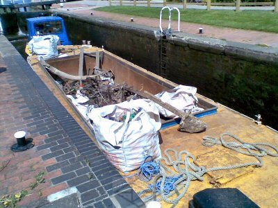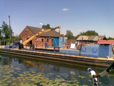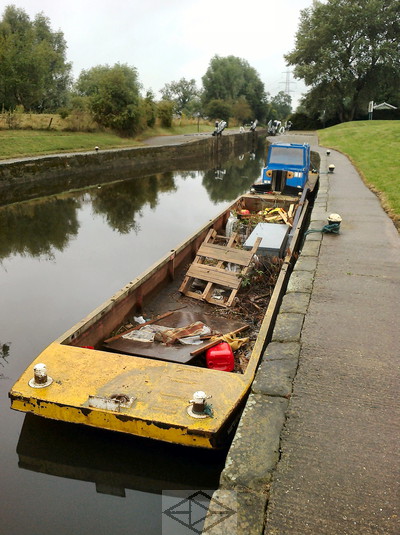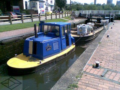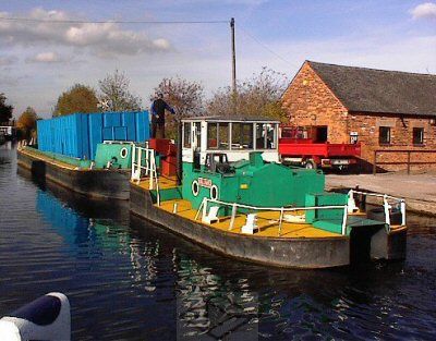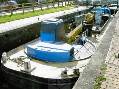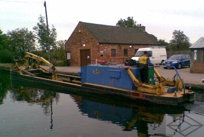 The pan with it is a dumb 'house lighter' (ie it has a rudimentary cabin) and was being used to carry the large shipping container for use as offices at Trent Lock for a few years in the 2000s. It was known locally as the BW branch of IKEA - for obvious reasons!