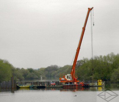 Attenborough Gravel pits again and a standard road crane on a pontoon - working on improving the nature reserve in 2009